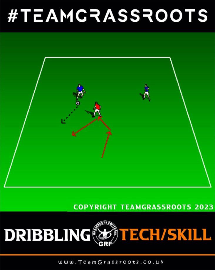 – Create 1 v 1 by showing the attacker away from the other attacker (cut off early by curving run)