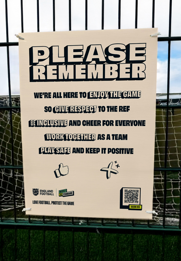 Promote a positive matchday environment with this A2 Correx Respect Sign, designed to clearly display the official FA Respect message across your facility. Made from durable 3mm correx, it’s lightweight, weather-resistant, and perfect for fixing to 3G cages, walls, or fencing.
