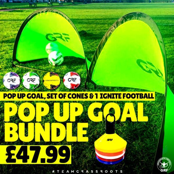 No matter where you are, this Pop Up Goal Bundle has everything you need to get outside and play some football!